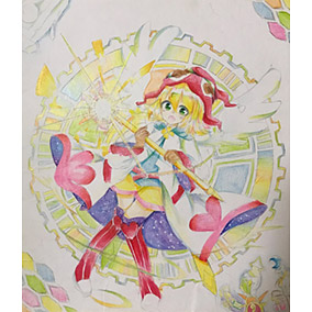 色を重ねたり、影を作ったりしました。元気なサタンのポーズや後ろのアルルとルルーの表情を工夫しました。