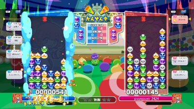 本作は、定番の「ぷよぷよ通」ルールに加え、一発逆転が狙えて大連鎖が気軽に楽しめる「ぷよぷよフィーバー」ルールの2つを厳選して収録しています。今回のアップデートでは、他のプレイヤーの対戦を観戦したり応援できる「かんせん」モードの追加や隠しキャラクター「ラフィソル」「パプリス」の追加など大幅な機能追加を実施いたしました。