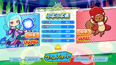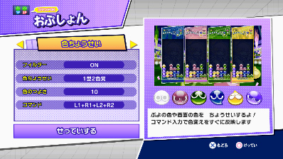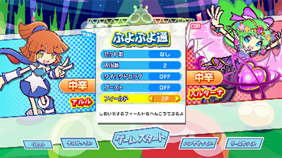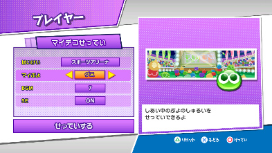 ※なお、設定を変更しても、「試合開始や終了の演出」「おじゃまぷよの落下速度」「クイックドロップ使用時」には影響しません。