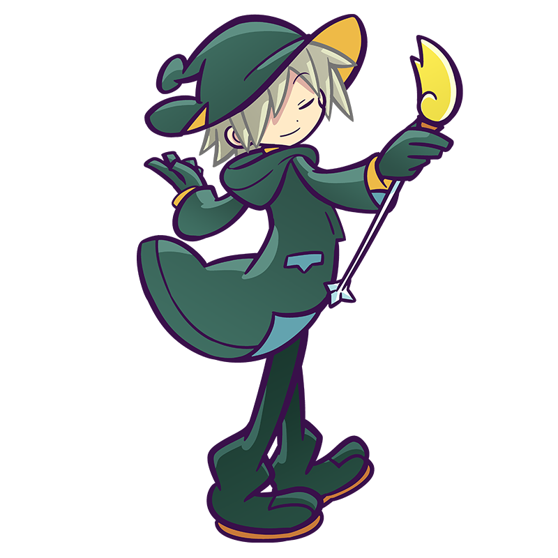 甘いモノが大好きで出会った人にすすめるが、なかなか喜んでもらえないだけでなく、なぜかいつもアヤシイ人にみられがち。ちなみに、甘いモノは呪文で出しているように見えるが、実は手作りしたものを呪文で手元に取り寄せている。
