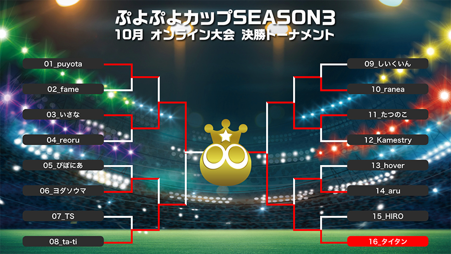 | 大会名 | セガ公式プロ・一般混合競技会 「ぷよぷよカップ SEASON3 10月 オンライン大会」 |