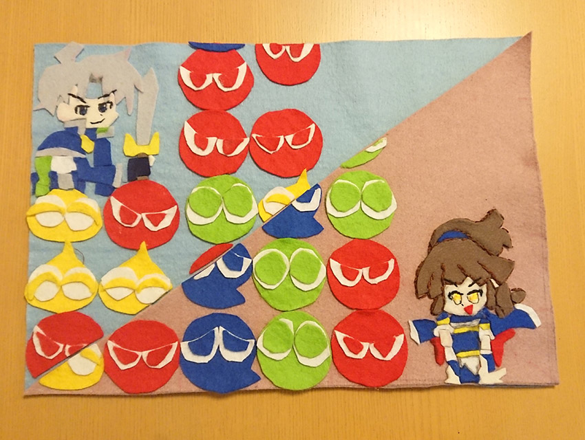 大好きなシェゾと、アルルのぷよ勝負シーンをフェルトと糸(刺繍)で表しました!!
