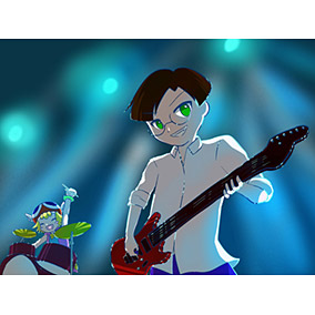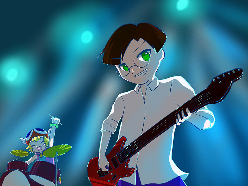 ギターを弾いているクルークです。クルークのテーマ曲でギターの音がバリバリ聞こえてくるので、クルーク本人が演奏しているといいなぁって思ったので描きました。