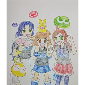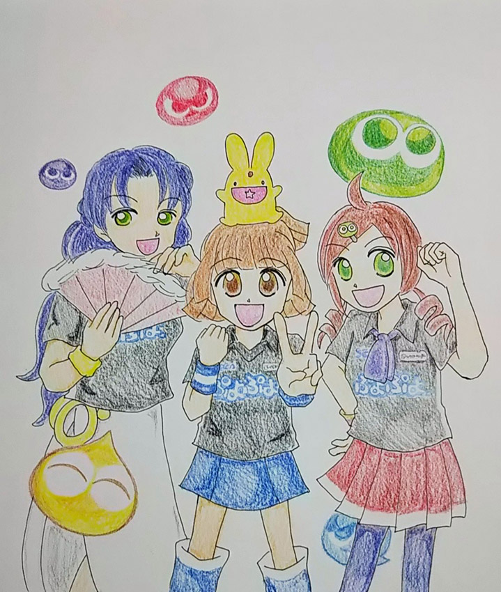 ぷよぷよは私が小学生のときから好きなゲームで思い出深いです。これからも応援しています!特に好きなりんごちゃんを描きました!