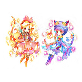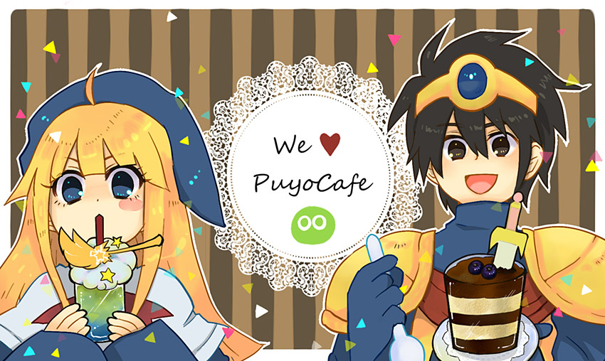 ぷよキャラのなかでもお気に入りの二人を描きました。また佐倉さんと三木さんの絡みが見たい。゚(゚^ω^゚)゚。ぷよクエカフェのメニューは毎回おいしいし可愛らしいので大好きです。今年のも楽しみ~!!