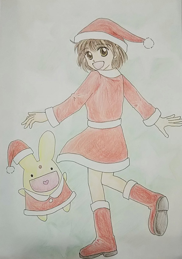 サンタ衣装の3人を描きました。サンタ衣装はみんな可愛くて好きです!