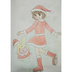 クリスマス風のアルルを描きました!アルルはぷよぷよの中で一番好きです