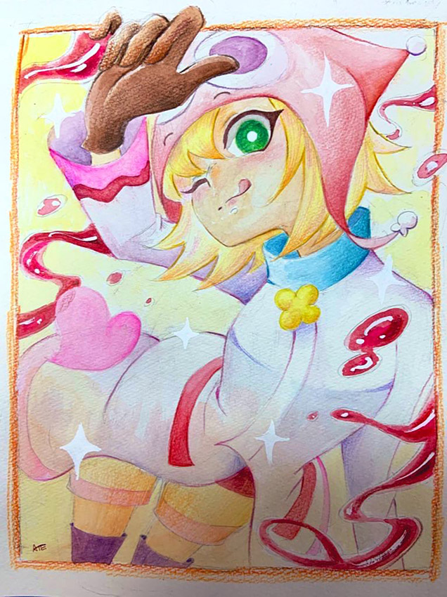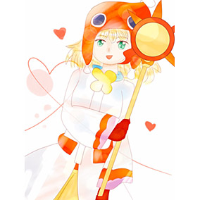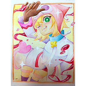 素敵な魔導師という夢を叶えたアミティの喜びを、太陽の輝きで表すことを意識して描きました。