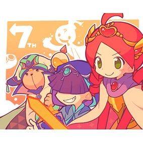「ぷよクエ」7周年おめでとうございます。数字にちなんでぷよぷよ7のメンバーをぷよクエの衣装で描きました。