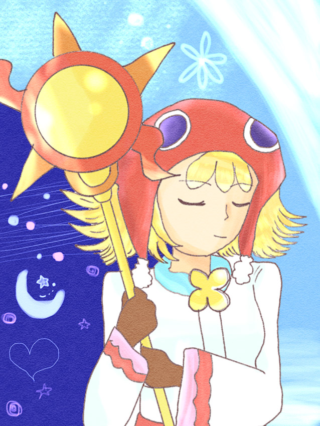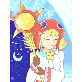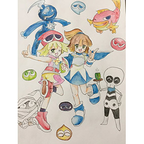 活発で明るく、元気なアミティが成長したら落ち着きのある一面も見られるようになるのではないかと思い、そんなアミティを描きました。何かを祈っていることを意識しています。
