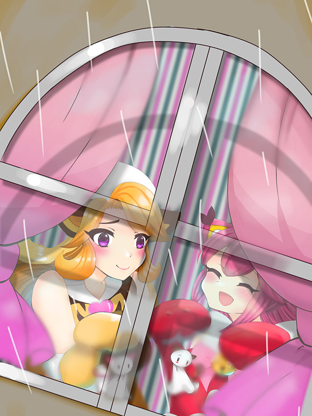 雨が嫌いな子と水が嫌いな子を描きました。2人には仲良くてるてる坊主作って欲しいです