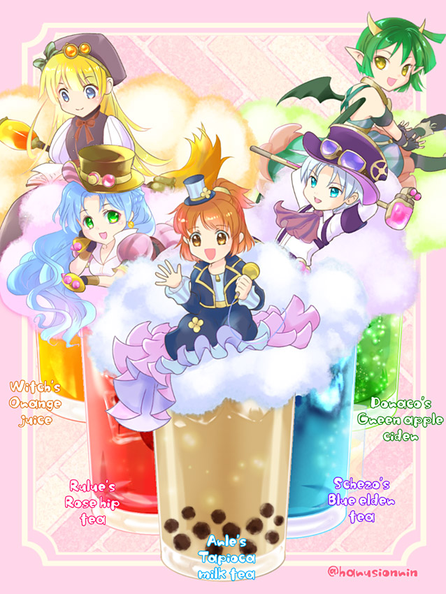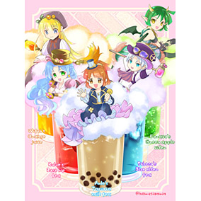 ぷよクエカフェ2019のメニュー蒸気都市ドリンクを描かせていただきました。綿飴に乗ってる蒸気初代組が可愛くルルーのローズヒップティーがとても美味しかったです。