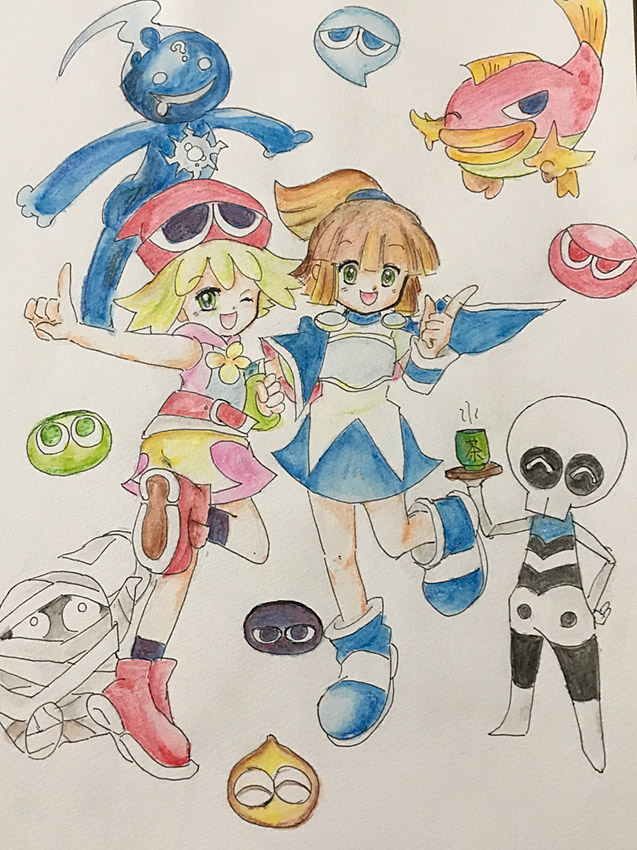 水彩でぷよぷよのメンバーを書きました。