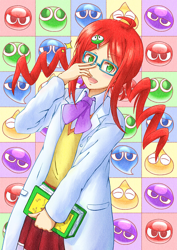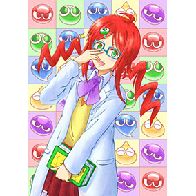 小6のときにぷよぷよ7が発売されて、夢中になってやってました。sin cos tan ∫ nPm を連呼してくれてたおかげで、試験中にビビッときて数学が解けて大学に入れました。感謝。賢くてかわいいけど、ちょっと変わってて、理系っぽいので、大学の研究室にいそうだなあと思って白衣の彼女を描きました。