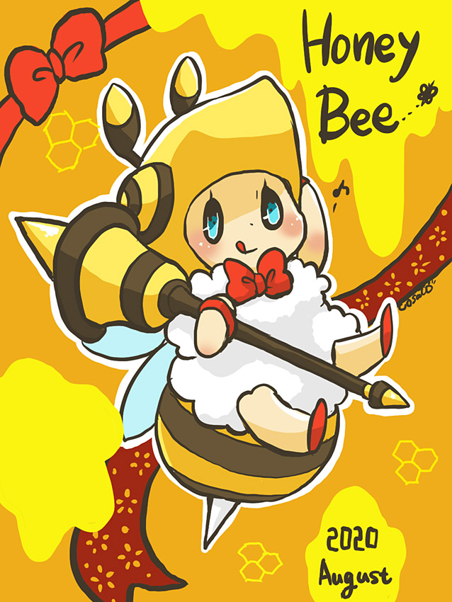 8がつく月なので、はちみつたっぷりハニービーを描きました。ぷよクエのハニービーはリボンがついてて可愛いです。