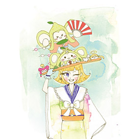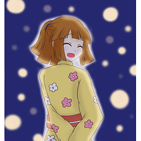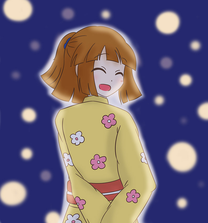 ぷよクエのオシャレなジーナにカワイイ着物コーデを着せてみました!オレンジとレモンは夏にぴったり!
