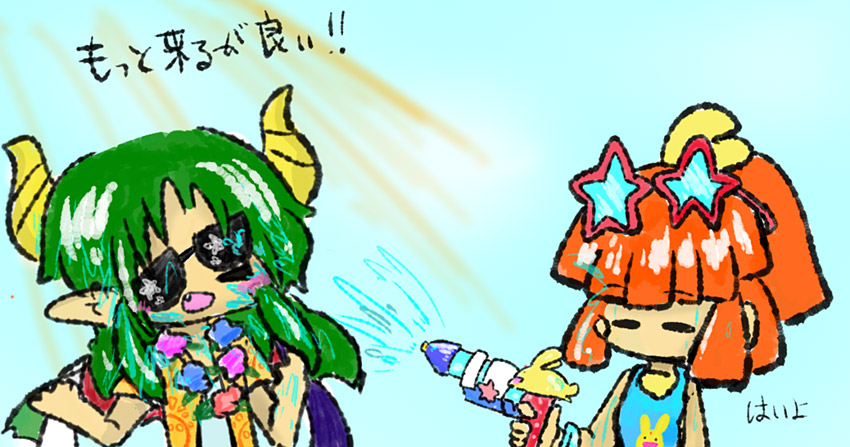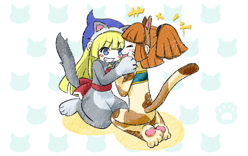 ちびラグをぷよの上に乗せたらかわいいんじゃないかと思って描きました。ぷよは目潰しくらって怒っています。