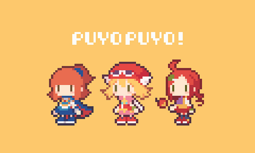 アルル・アミティ・りんごの3人をドット絵で描いてみました。