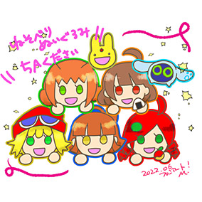 遅ればせながらぷよクエ9周年おめでとうございました!新ストーリーで時空探偵社組がフィーバーな絵柄になってたのが嬉しくて描きました。他のワールドでも懐かしい絵柄のキャラ達が出てくれると良いな...!!