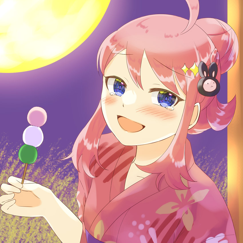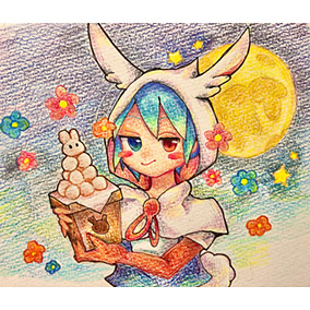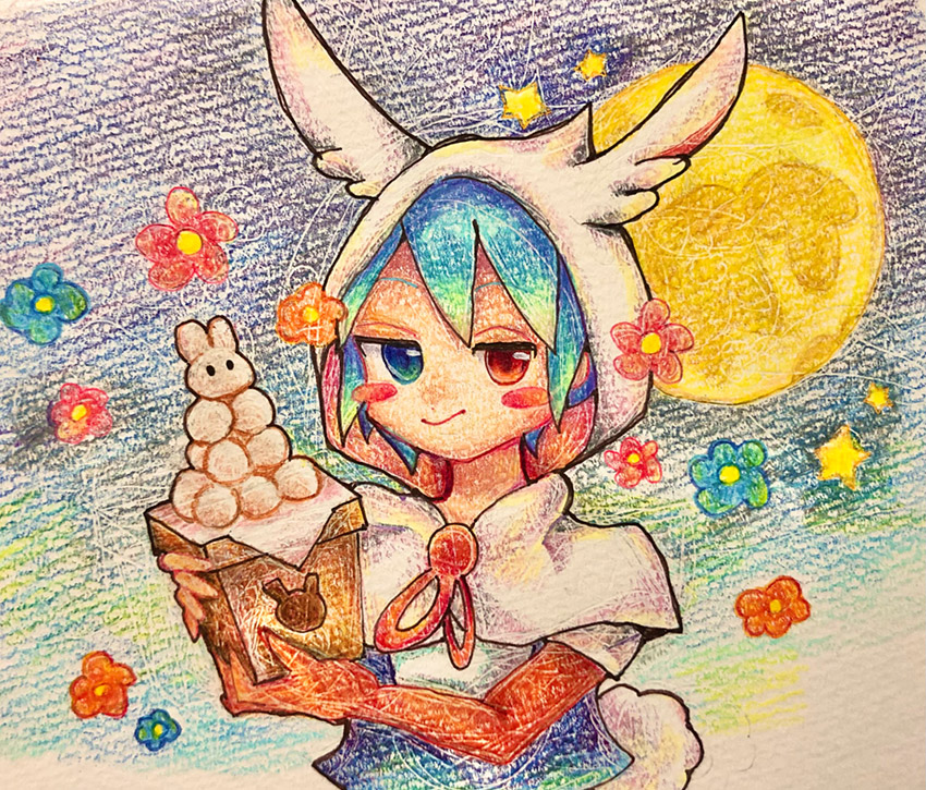 お月見メルーちゃんを描きました!メルーちゃんが笑ってる所が好きです。