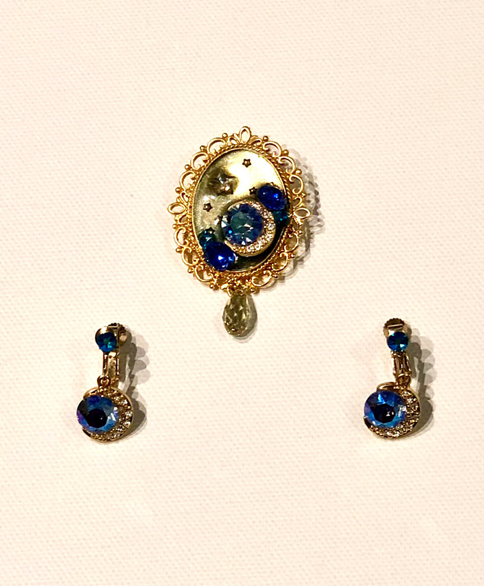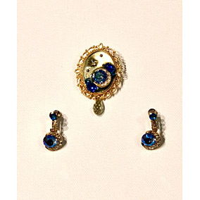 アインのブローチとイヤリングを使いやすい大きさにしたりアレンジしてみました。サファイアの魔神らしくサファイアっぽい色合いのストーンを使いました。