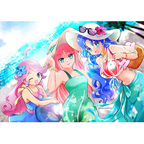 きらめく夏の思い出の1枚を描いてみました。毎年ぷよクエのかわいい夏キャラが増えるのが楽しみです。
