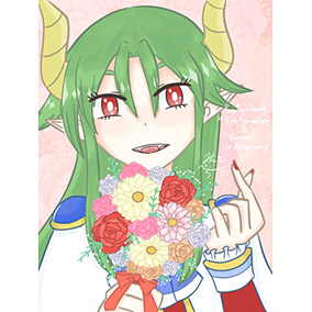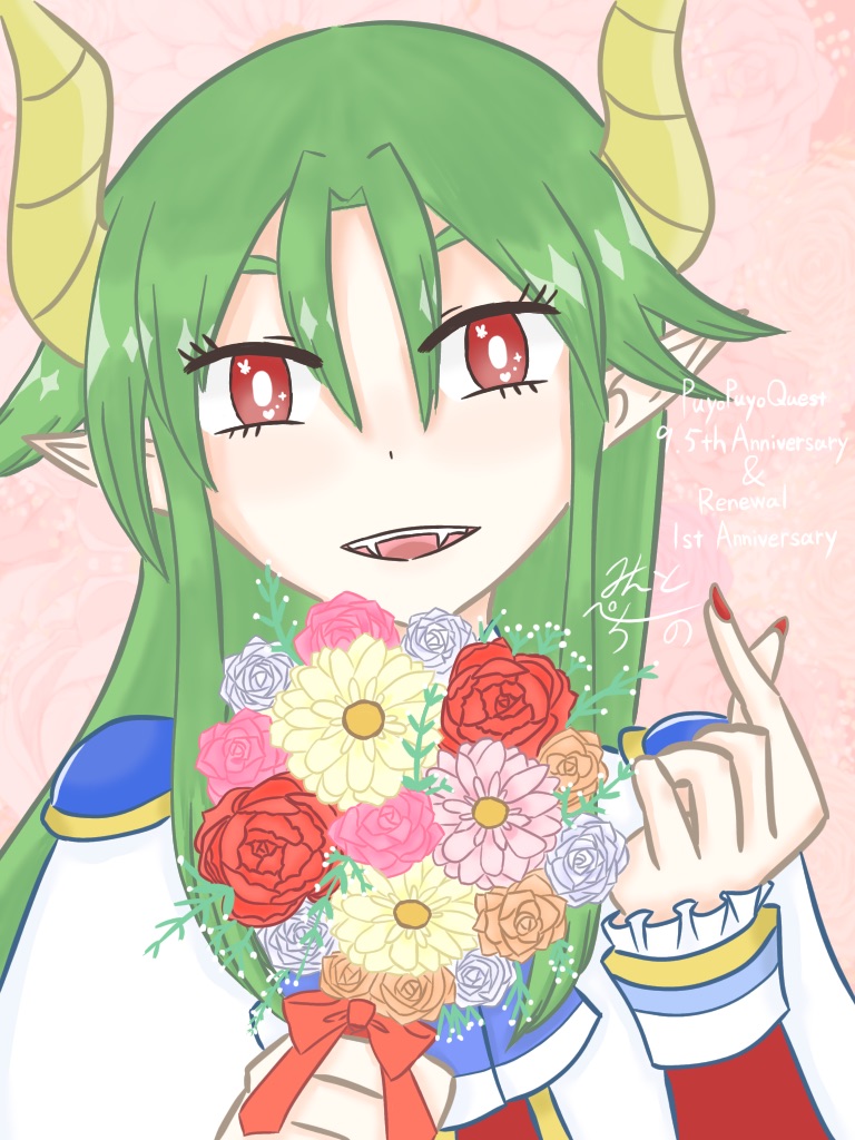 ぷよクエ9.5周年&リニューアル1周年のお祝いでとくもり衣装のサタン様を描かせていただきました!本当におめでとうございます!