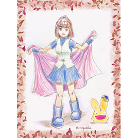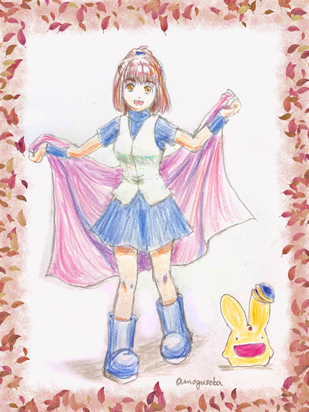 秋めいてきましたね。アルルはマントも夏用と秋冬用(春用も?)を持ってそうだな、と思って描きました。