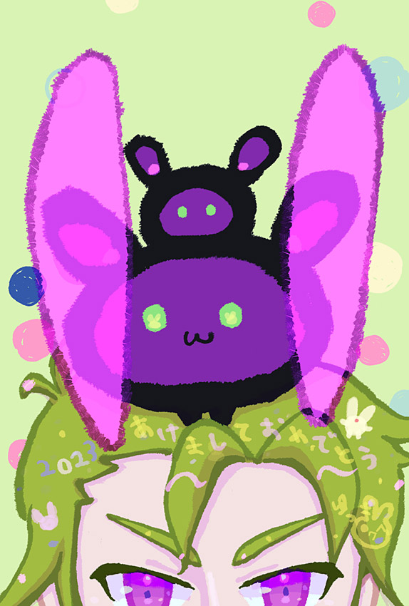 2023年の干支であるウサギ(?)とリデルです。リデルは実は最初おどおどしてて苦手でしたが、どんどん好きになっていったキャラクターです。優しくほんわかしたリデルみたいな気持ちで2023年を過ごせたらと思います。