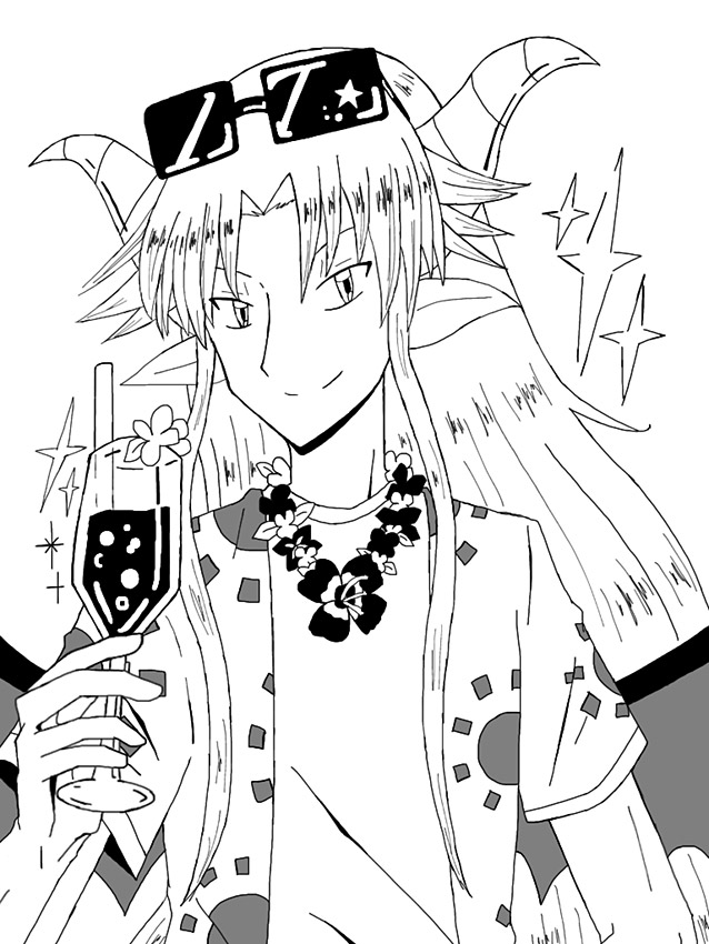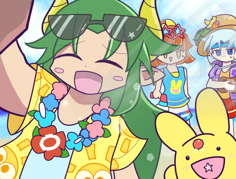 初投稿です!!サタンとシェゾ、アルルとカーくんが好きなのでまとめて1枚にぶち込みました!!(!?)夏といったらサタンさま...あれ、そういえばしおかぜのアルルとかアロハ姿のシェゾとかいたなって思い出してノリノリで描いてました(可愛い衣装ありがとうございます運営様!)