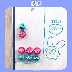 子どもがぷよぷよを好きになったので、チャ~ンス★とホワイトボードに自作ぷよを並べてあれこれ話しています。
