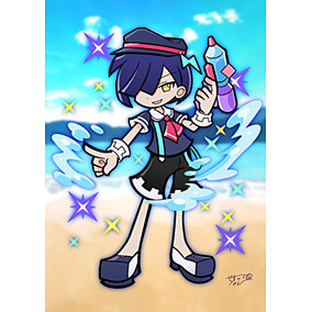 7月ということで、ポップなビートでサマーなきらめくアミティを描きました!ちょっとネオンな雰囲気の、オトナっぽいひと味違うアミティも可愛いじゃないか!!!という想いを込めました。。(照)また、遅ればせながら10周年、おめでとうございました!これからのぷよぷよシリーズも楽しみにしてます!