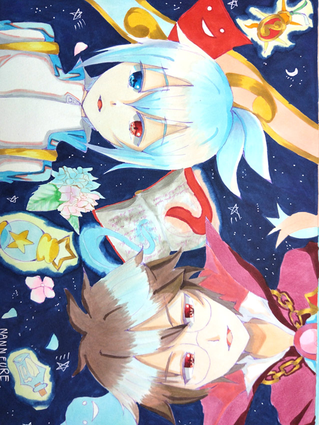 アナログで描いてみました。久しぶりにコピックで描いたら楽しかったです!小説ぷよぷよ シグの秘密からシグについて気になって調べて、ぷよぷよフィーバー2をプレイしたらこの二人、こんなに奥が深いのか...となり感動し推しになりました。過去に囚われたマモノと未来に進むシグ。これからどうなるのか楽しみです。