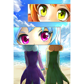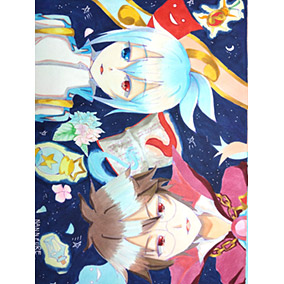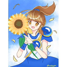 水彩画風に描いてみました!背景は夏っぽく青色で爽やかにしました(*´ω`*)......まぁ、今が9月なのは置いといてください(泣)構図はトレス素材使わせて頂きました