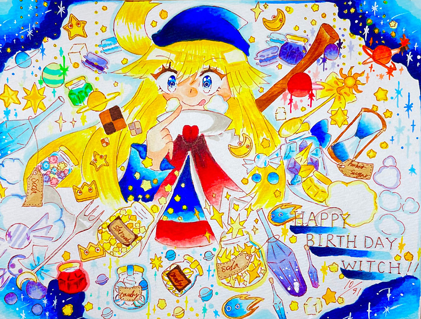 おいっす!初めて投稿させていただきます、お誕生日イラストです。家族でいつもぷよぷよ、楽しませていただいています、改めてウィッチお誕生日おめでとう~!!