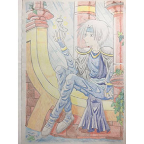 彼には星や月といったスピリチュアルなモチーフが似合って描いていて楽しいです。星や月といったらあの3つのアイテムを思い出します。フィーバー2は今でも大好きです。