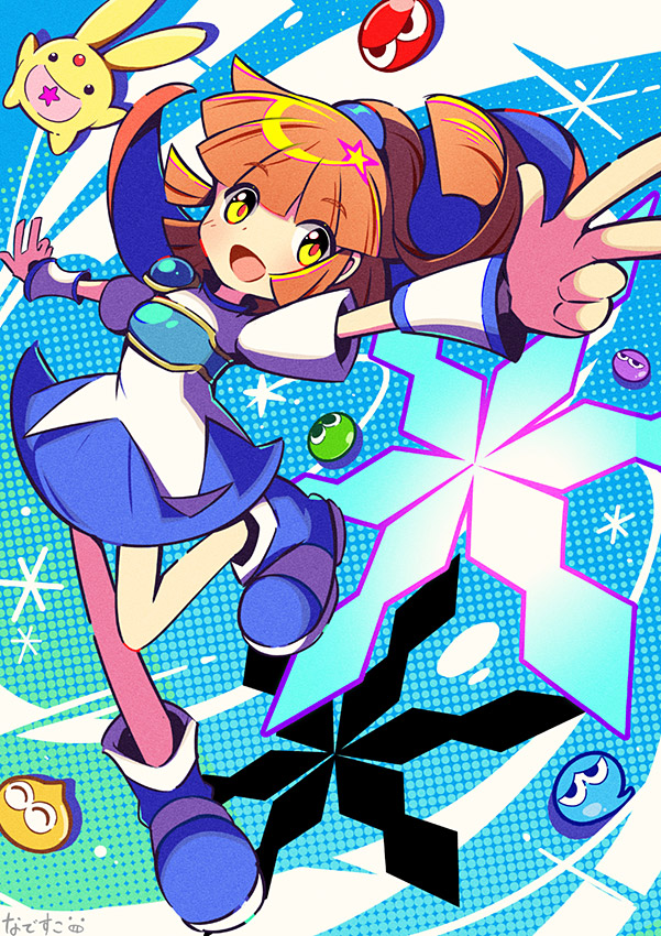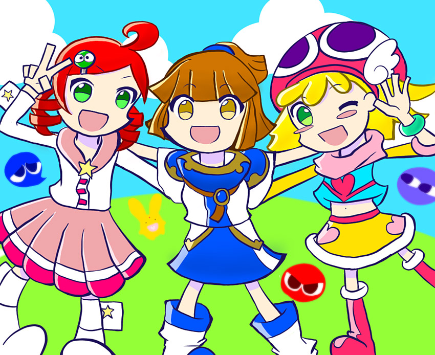 ぷよ7の「だいへんしん」大人バージョンの3人を描いてみました!(+後ろにカーくん)初めて専用のアプリで描いたぷよイラ。そしてこの時気付く(まさかオンステージのりんご、ポップなアミティは...!?)。いつまでもみんなが仲良く笑っている姿がみれますように!!