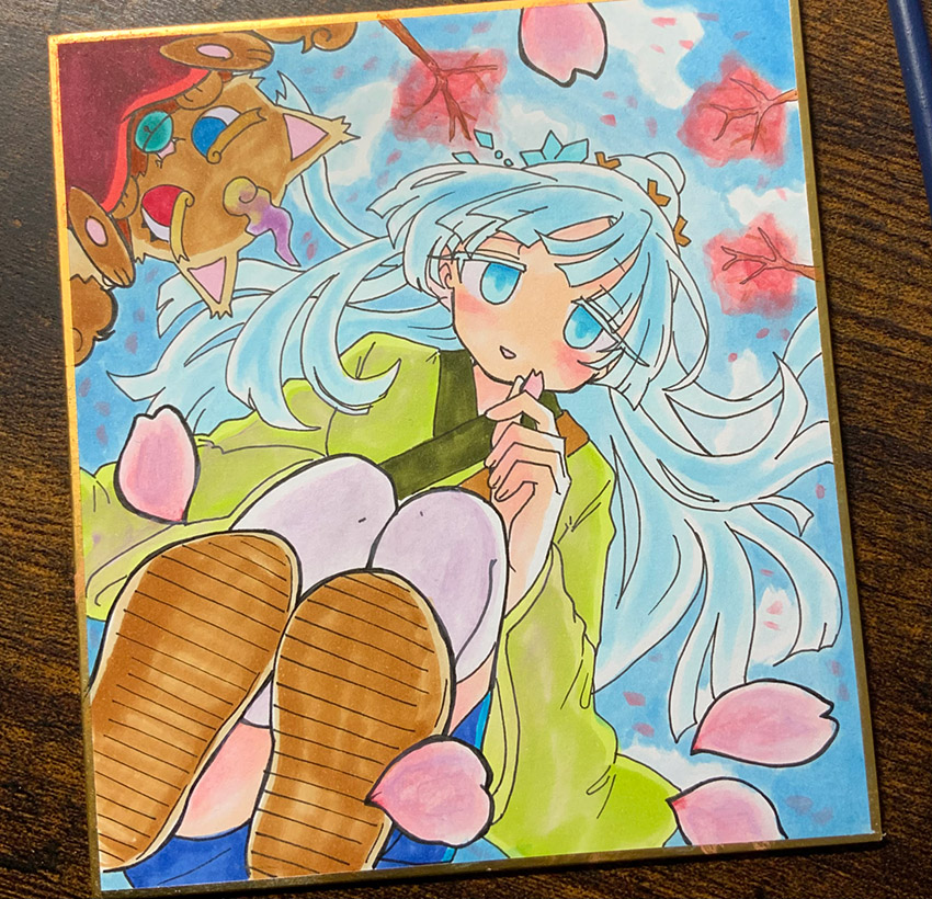 スノヒメちゃんが春を楽しむところみたいな~と思って描きました!雪じゃない花の吹雪を満喫してほしいです
