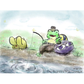 のほほが釣りしているところを描きました。