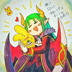 誕生日おめでとう!ふんわりしたシグを落書き風イラストで描いてみました。