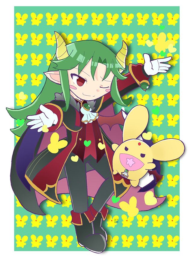 カーバンクルちゃんのことがだ~いすきなサタンとカーバンクルを描いてみました。フィールドの【やみいろパラダイス】、強いのに見た目とボイスが面白くて打つたびに笑ってしまいます......(笑)