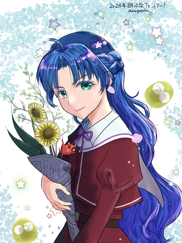今月は、ぷよクエよりまんてんぼしのあたりを描きました。先輩に七夕定食を持ってきたあたりをイメージしてみました。8月でも七夕祭りをする地域があると知ったので感謝を込めて...