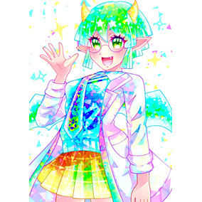 タイトル通りジャンプするリデルさんです。背景はポップな感じに仕上げました。