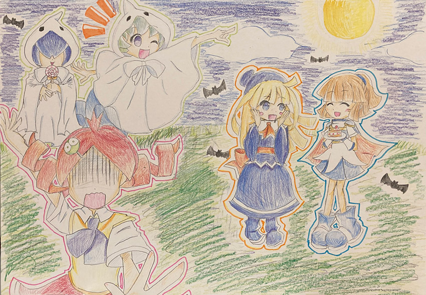 今月は10月31日の風景を描きました。今までのファンアートの中で一番うまく描けたと思います!ただ、あんまりハロウィンらしさが出せなかった...。ちなみに、小さくて見づらいけどアルルがウィッチのためのバースデーケーキを持っています。カレー風味です。