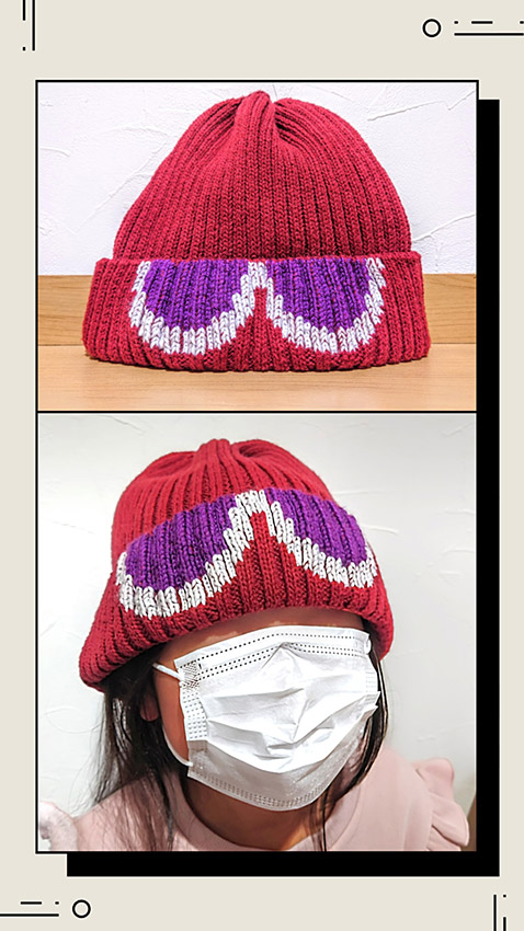 赤色のニット帽に刺繍をして、アミティの帽子を再現してみました!