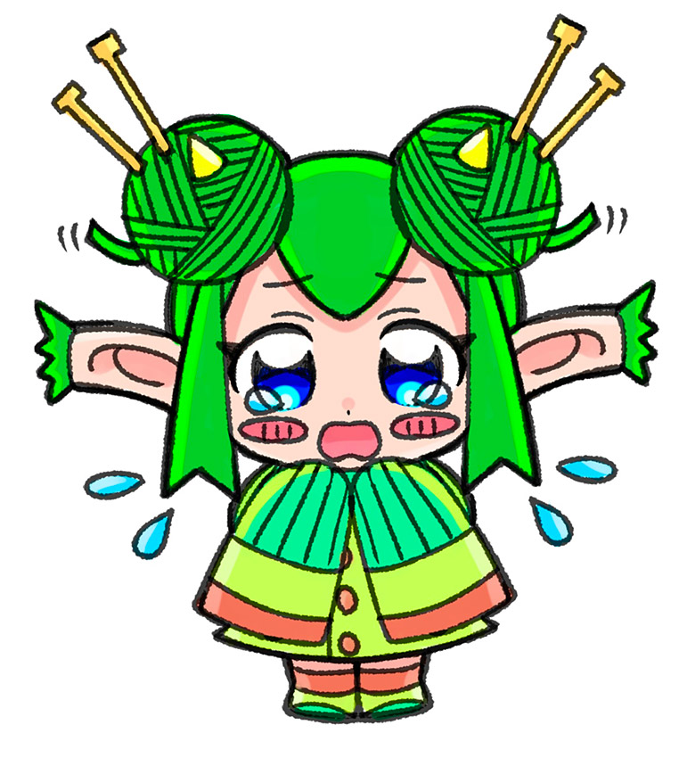 髪の毛のお団子が毛糸になっちゃったリデルちゃんです。冬になり編み物が楽しい季節になりましたね!プリンプタウンのみんなで編み物をしているところが見てみたいです...!!