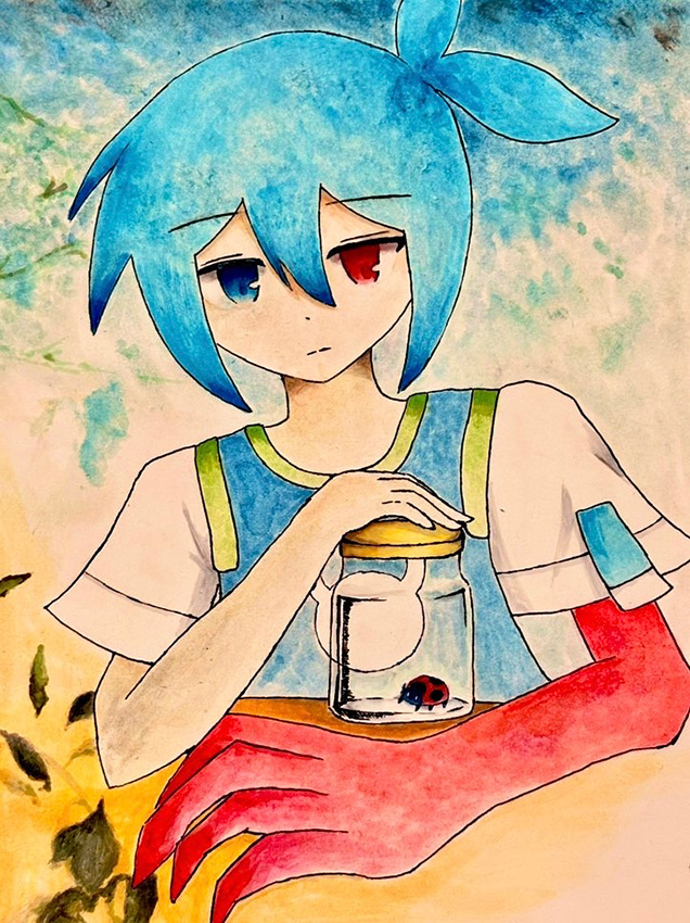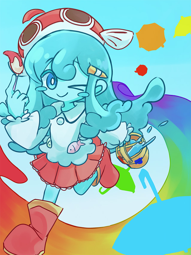 もうすぐ梅雨の時期なので水の妖精のウンディーネが楽しんでる姿を描きました!