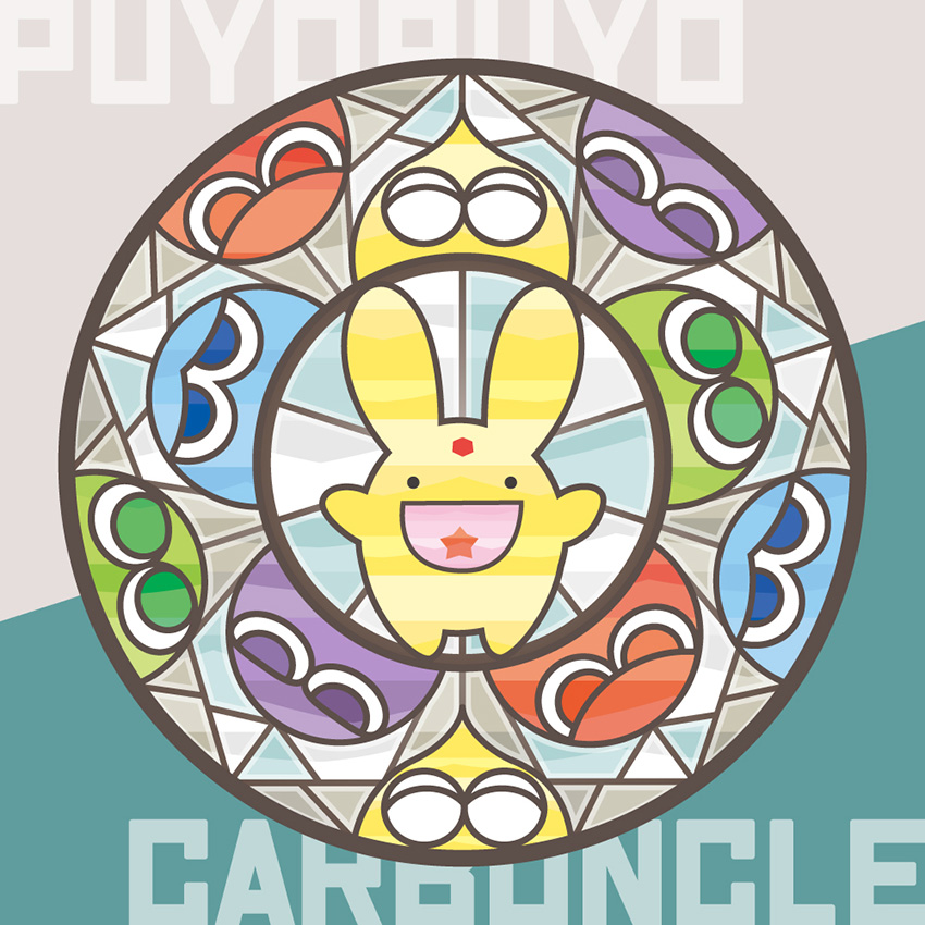 カラフルなぷよぷよがステンドグラスになったらキレイだろうなぁと思い、カーバンクルを添えてステンドグラス風に仕上げてみました。