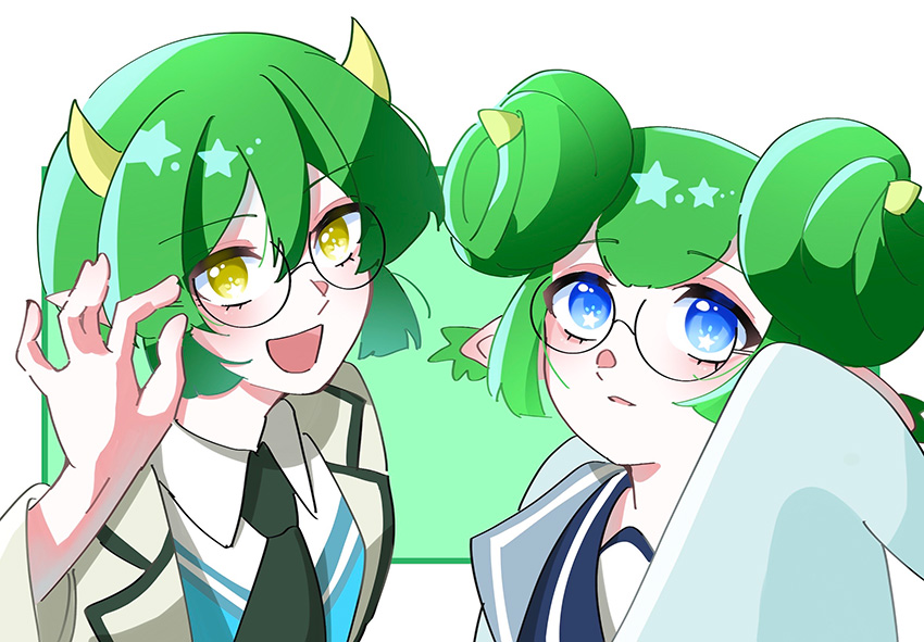 ツノ姉妹でメガネしてるの可愛すぎます!!!おにいさまと3人でメガネクイッってしてほしいです!!!