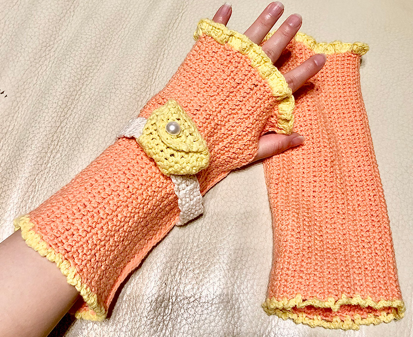 7月25日はラフィーナのお誕生日!ラフィーナが大好きなお友達にアームカバーを自分で編んでプレゼントしました。たしなみポーチをイメージした小さなポーチには飴玉など小さな物が入ります。